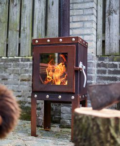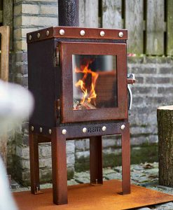 Das Piquia ist ein kompaktes CorTen-Stahl Modell mit industrieller Optik. Dieser Kamin ist mit einem galvanisierte Griff und mit Verriegelungsbolzen aus rostfreiem Stahl versehen, sowohl über als auch unter der Tür. Diese ergeben mit dem warmen verrosteten Stahl eine tolle Gesamt-Optik. Bei der dreibeinige Version sind die Beine aus Edelstahl gefertigt, bei der Version mit 4 Beinen befindet sich auf der Rückseite zusätzlich ein Aschenbehälter.