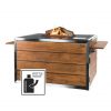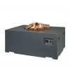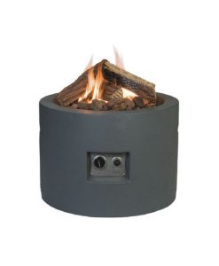 Der Feuertisch ist aus Verbundstoff in Beton-Optik gefertigt und ist dadurch wetterbeständig. Schön verdeckt durch mitgelieferte Lavasteine und Holzscheite entsteht der Eindruck eines echten Feuers.